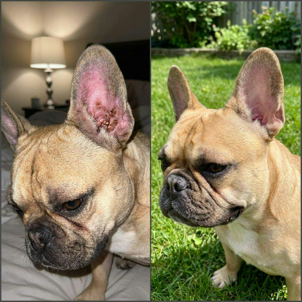 La plupart des propriétaires constatent une diminution des démangeaisons en 2 à 3 semaines. Une amélioration significative de la peau survient généralement entre la 4e et la 8e semaine. La reconstruction complète de la barrière cutanée prend 8 à 12 semaines, c'est pourquoi la plupart des clients optent pour des coffrets de plusieurs flacons.
